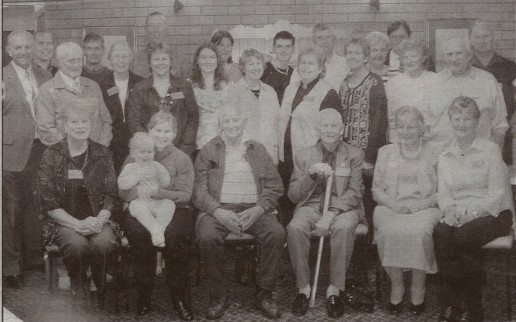 the reunion: Back: John Alexander, Scott Egan, Arthur Trenery, Rob Trenery, Eileen Woods, Andrew Woods, Nola O'Connor, Louise Whittington, Ann Wheeldon, Mary Whittington, Leon Whittington, Helen Airton, Trevor Sutherland, Lynne Wondrock, Dalveen Odendahl, Ken Howarth, Edith Sutherland, Paul Egan, John Brownbridge. Front: Estelle Steel, Kathy Jones (with Zachary Jones), Claude Drenry, Sheldon Alexander, Estelle Price and May Fecondo. : |