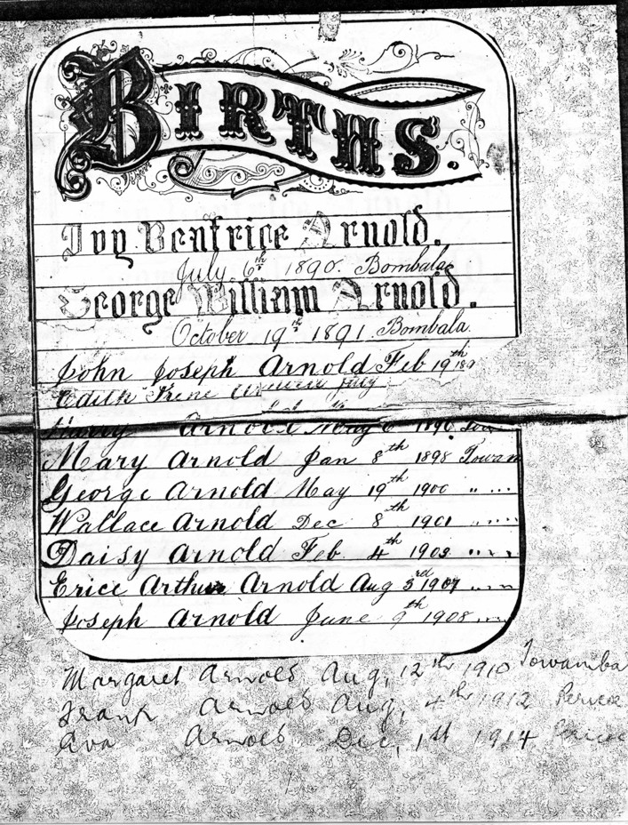 George and Sarah Arnold had twelve children.