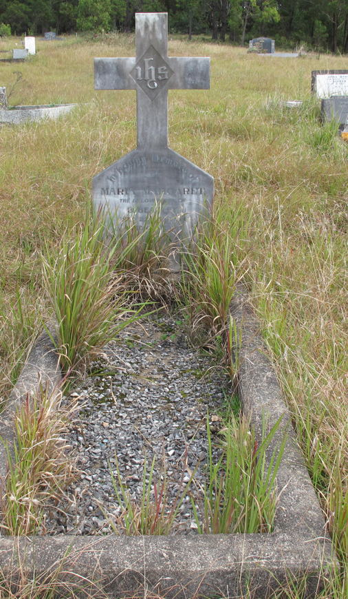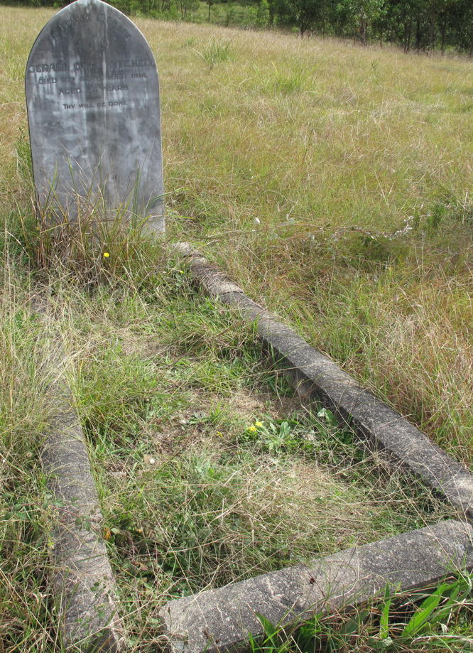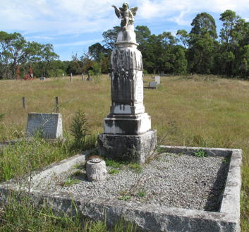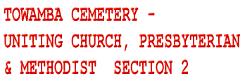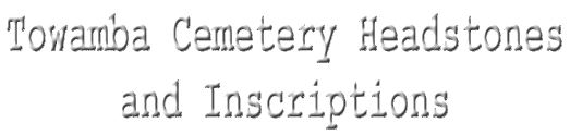 Cemetery Inscriptions, Vol. 2 Towamba is a small village in the heart of the Towamba River valley, 30 kilometers from Eden on the Far South Coast and about the same distance from the Pambula-Bombala Road via Burragate. It was on the original road from the coast to the Monaro installed by Ben Boyd in the 1840s. The first cemetery was situated on a property to the east of the village beside a creek. There were 10 graves, but the passage of time and the ravages of floods over the years have left only one tombstone to mark a burial place. The tombstone is reported to be the work of Thomas Blaze, an early settler, who came to Australia with Ben Boyd. He is buried in the present cemetery. The tombstone remaining in this early cemetery is that of Jane Mitchell and her daughter. It was cracked in the 1971 flood, but is still in quite good order (this is now incorrect as the headstone has crumbled, Editor 2006) with the inscription in part as follows: |