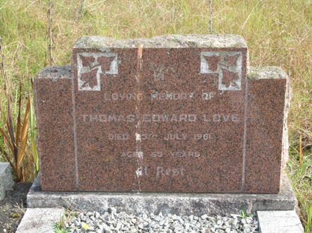 In Loving Memory Of TOM LOVE Died Suddenly 8th Aug. 1918, Aged 53 Years. Honoured And Respected By All Who Knew Him May His Soul Enjoy Eternal Rest. Also Our Infant Son ERNEST LOVE [Died 14th October 1902, Aged 14 Days] |