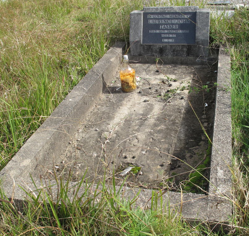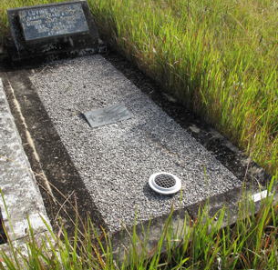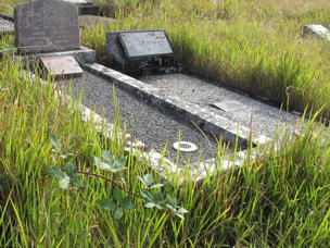 Triple grave, three white wooden crosses lying on grave Cross 1 - In Loving Memory EUNICE RUTH TASKER Passed Away 2.9.[19]96 Age 74 Years Cross 2 - In Loving Memory PAUL TASKER Passed Away 26.7.[20]03 Age 57 Years Cross 3 - In Loving Memory KENNETH TASKER Passed Away 14.6.[20]03 Age 48 Years |