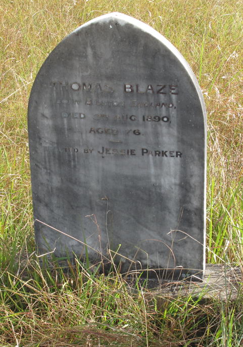 THOMAS BLAZE Born Bilston, England, Died 3rd Aug. 1890, Aged 76. Erected by JESSIE PARKER. |
