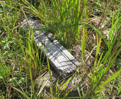 Single grave within weathered wooden picket fence, wooden stake Marker 130 R. HIGGINS [Possibly ROBERT HIGGINS who died 25th May 1907 - from Eden Court House Records] |