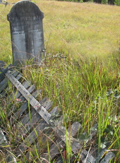 years; also Jane Mitchell, mother of the above, died 13 Sept 1865, aged 36 years. There was a footstone still in place with the initials J.M. on it. (This has now almost disappeared, Editor 2006) It was decided to move the cemetery to higher ground and the present site, west of the village, was dedicated in June 1886. The tombstones were transcribed on 9 March, 1988 and checked in June 1989. (Checked again by editor in 1998) |