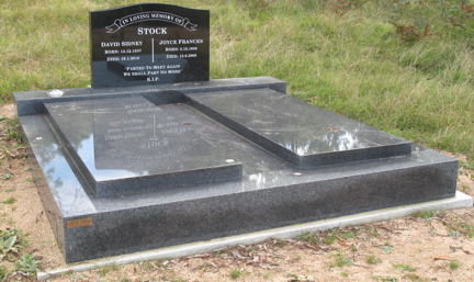 In Loving Memory Of STOCK [left side] Blank [right side] JOYCE FRANCES Born: 5.12.1936 Died: 15.6.2008 "Parted To Meet Again We Shall Part No More" R.I.P. |