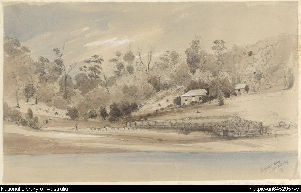 The above drawing: The Cattle yard, Twofold Bay, from the deck of the Tasmania en route to Hobarton 1869 (source: http://nla.gov.au/nla.pic-an6452957)