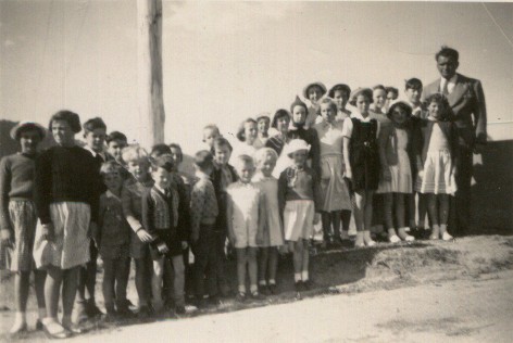 pupils on ANZAC Day. c 1950-57 Photo courtesy Don Mills |