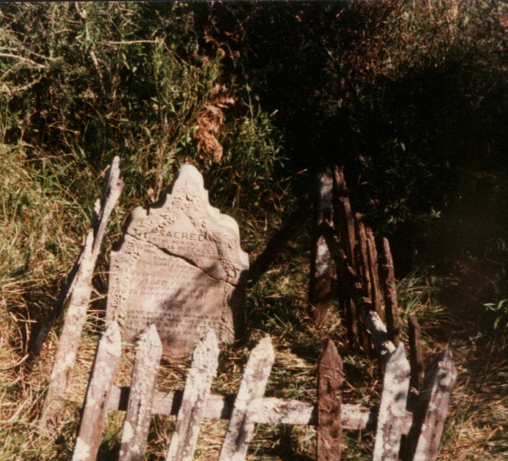 Cemetery Inscriptions, Vol. 2 Towamba is a small village in the heart of the Towamba River valley, 30 kilometers from Eden on the Far South Coast and about the same distance from the Pambula-Bombala Road via Burragate. It was on the original road from the coast to the Monaro installed by Ben Boyd in the 1840s. The first cemetery was situated on a property to the east of the village beside a creek. There were 10 graves, but the passage of time and the ravages of floods over the years have left only one tombstone to mark a burial place. The tombstone is reported to be the work of Thomas Blaze, an early settler, who came to Australia with Ben Boyd. He is buried in the present cemetery. The tombstone remaining in this early cemetery is that of Jane Mitchell and her daughter. It was cracked in the 1971 flood, but is still in quite good order (this is now incorrect as the headstone has crumbled, Editor 2006) with the inscription in part as follows: |
