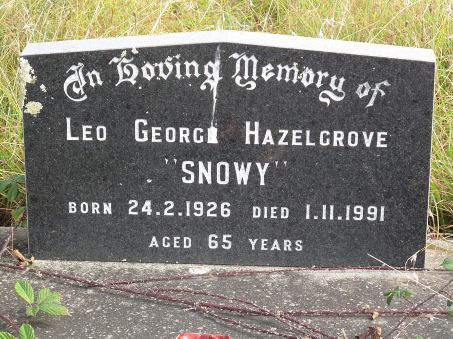 In Loving Memory of LEO GEORGE HAZELGROVE "SNOWY" Born 24.2.1926 Died 1.11.1991 Aged 65 Years |