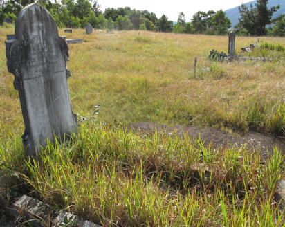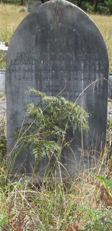 years; also Jane Mitchell, mother of the above, died 13 Sept 1865, aged 36 years. There was a footstone still in place with the initials J.M. on it. (This has now almost disappeared, Editor 2006) It was decided to move the cemetery to higher ground and the present site, west of the village, was dedicated in June 1886. The tombstones were transcribed on 9 March, 1988 and checked in June 1989. (Checked again by editor in 1998) |