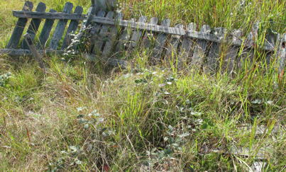 Single grave within weathered wooden picket fence, wooden stake Marker 130 R. HIGGINS [Possibly ROBERT HIGGINS who died 25th May 1907 - from Eden Court House Records] |