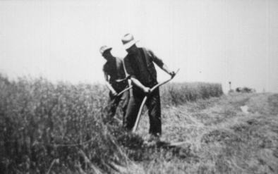 | Albie and William Love cutting hay at Love's